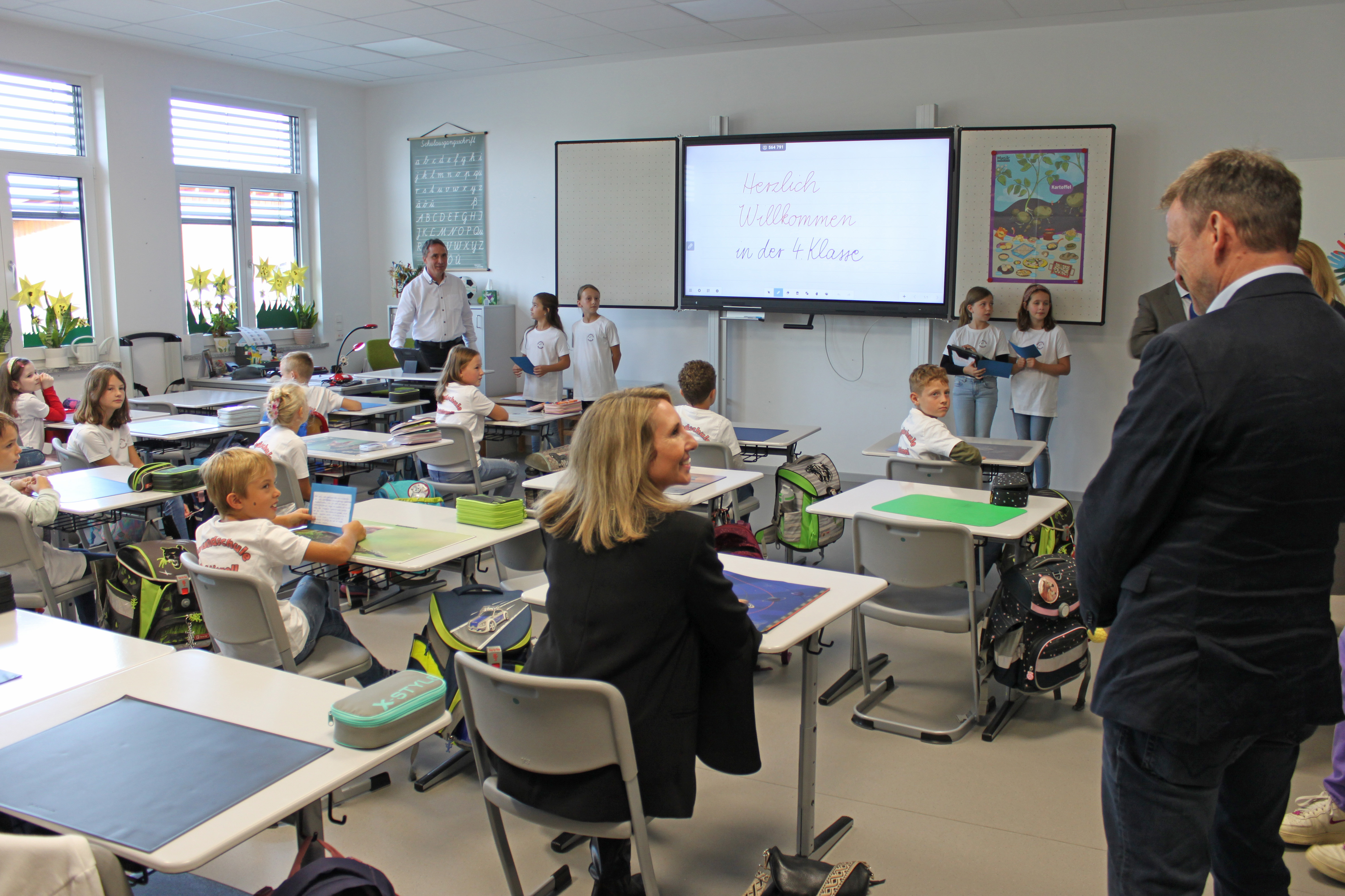 Die bayerische Staatsministerin für Unterricht und Kultus, Anna Stolz, besuchte unsere kleine Dorfschule. Bürgermeister Manfred Reiner hatte zusammen mit dem Landtagsabgeordneten Tobias Beck diesen Besuch eingefädelt. Den Ablauf bis ins kleinste Detail geplant und vorbereitet hat unsere Schulleiterin Heidi Roß, kräftig unterstützt von Markus Schedlbauer, dem Lehrerteam und unserer Sekretärin Nicole Maier.